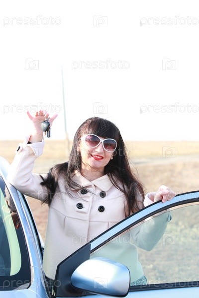 Счастливая девушка с ключом от автомобиля