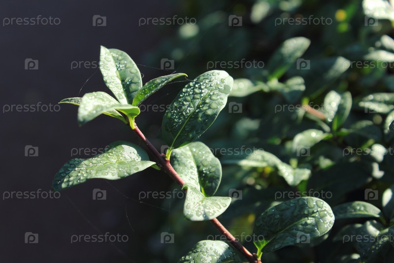 Зеленые ветви с паутиной и росой