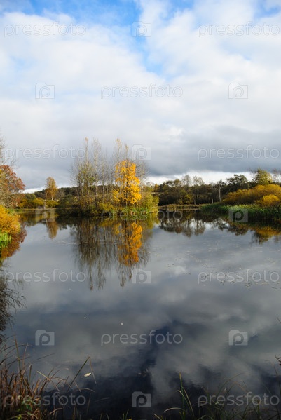 Отражение неба в пруду осенью