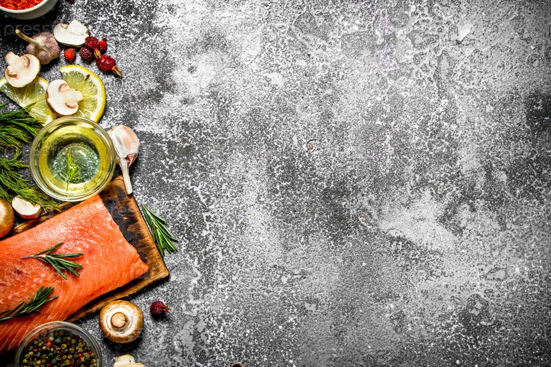 Свежее филе лосося с травами и специями