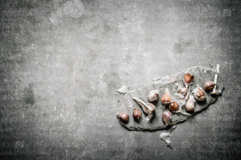 Свежий чеснок на каменной подставке