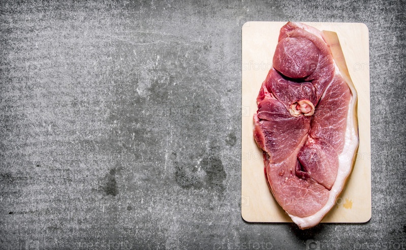Кусок свежего сырого мяса на деревянной доске