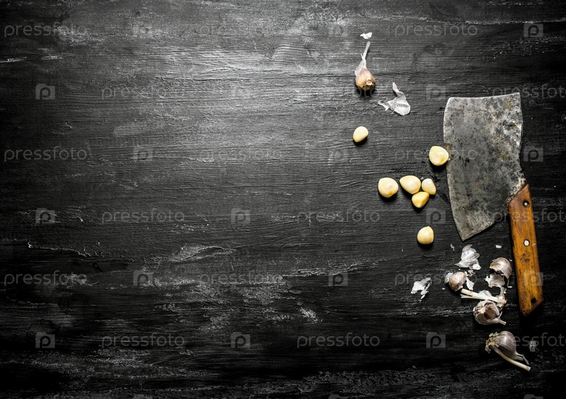 Рубленый чеснок и старый топорик