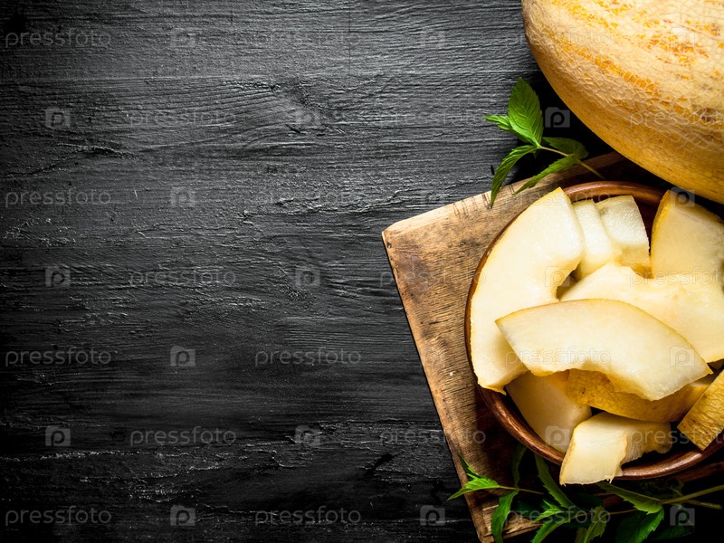 Кусочки спелой дыни со свежей мятой