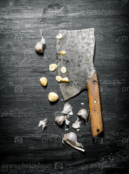 Рубленый чеснок и старый топорик