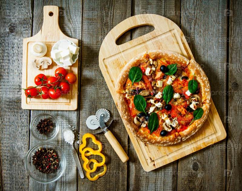 Вкусная пицца на деревянной доске