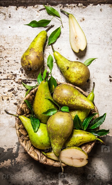 Груши в корзине с листьями
