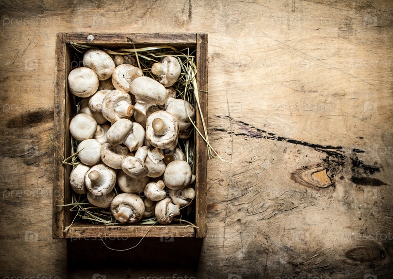 Деревянная коробка свежих грибов