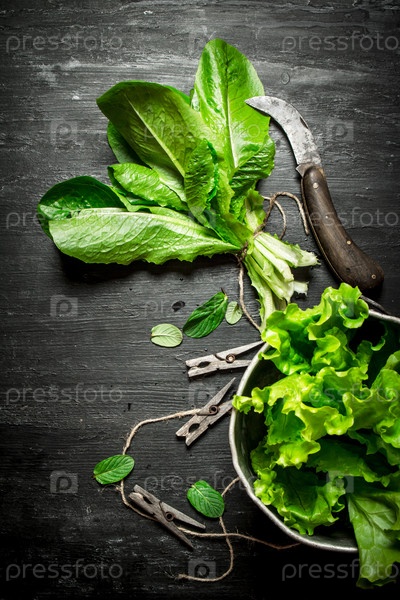 Свежие травы со старым ножом