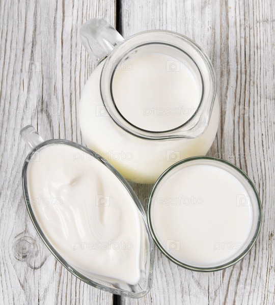 Молочные продукты на деревянном фоне