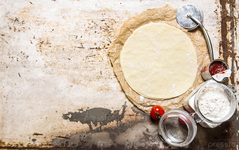 Тесто для пиццы с мукой и томатным соусом