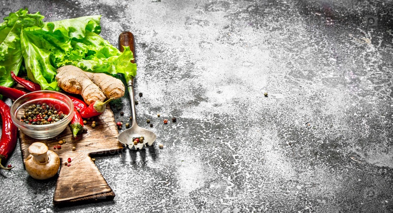 Свежие овощи со специями и травами