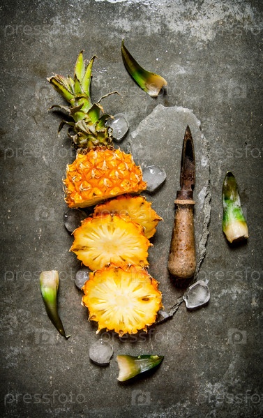 Кусочки ананаса с ножом