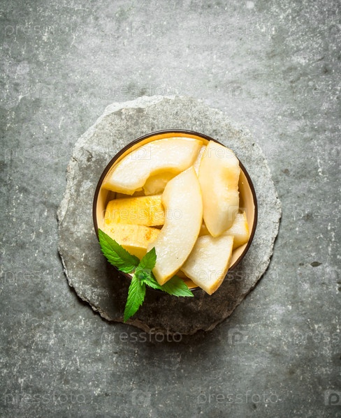 Спелая дыня с ветвями мяты
