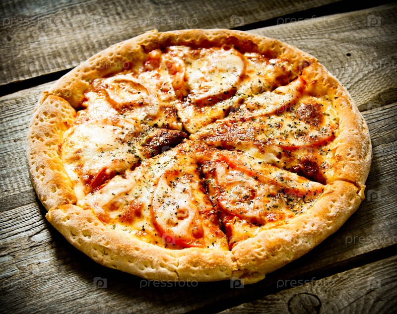 Вкусная пицца на деревянном фоне