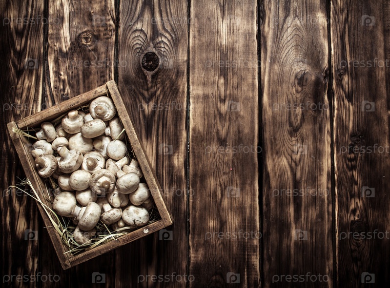 Деревянная коробка свежих грибов