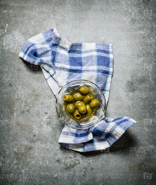Оливки в масле на стеклянном блюдце