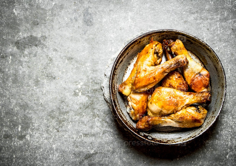 Жареные куриные ножки на старой сковороде