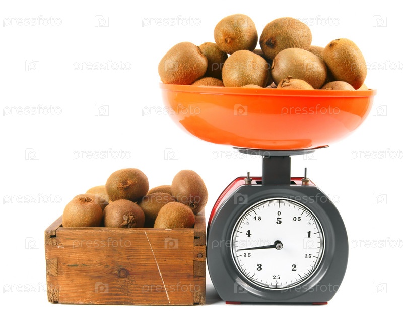 Киви на весах и в коробке
