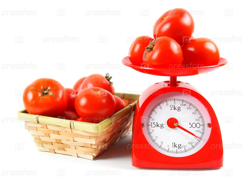 Помидоры на весах и в корзине