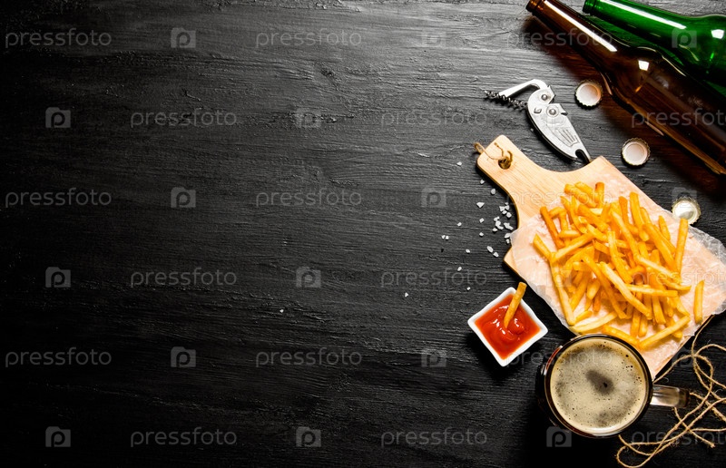 Пиво и картофель фри с томатным соусом