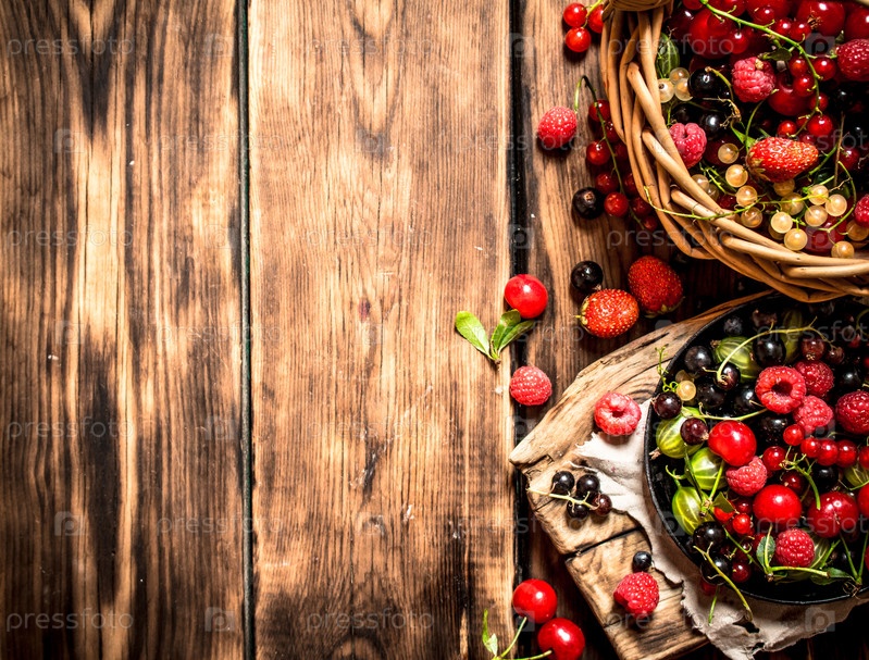 Свежие ягоды в старой корзине