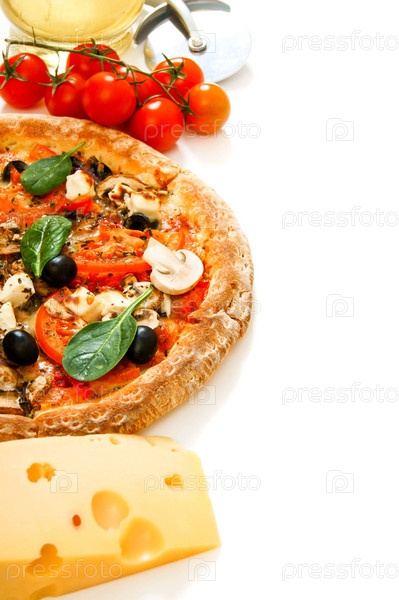 Вкусная пицца на белом фоне