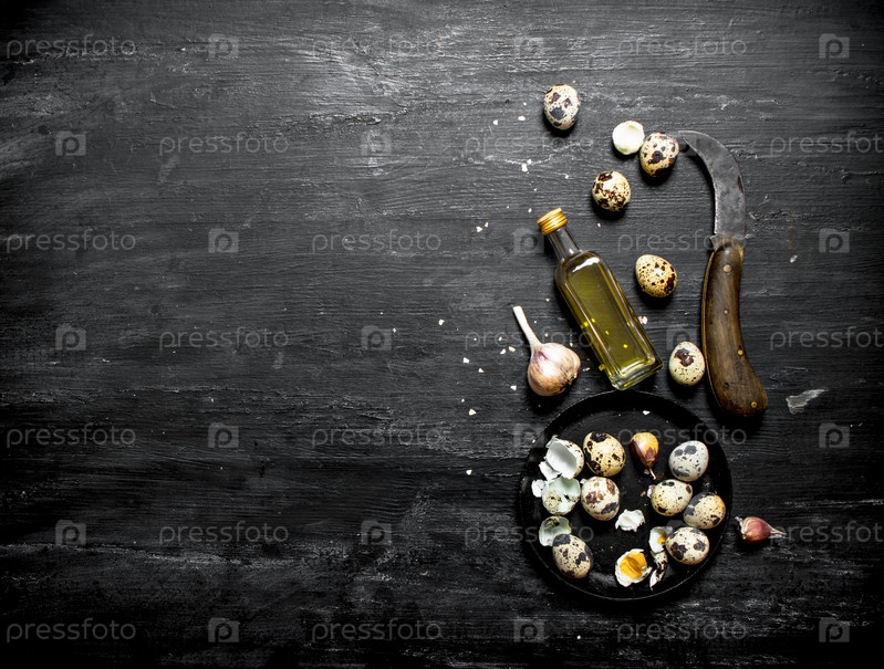 Перепелиные яйца с оливковым маслом и чесноком
