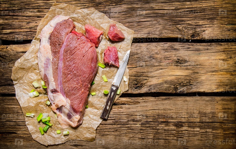 Свежее сырое мясо с ножом