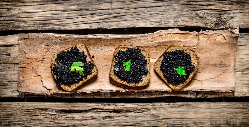 Бутерброды с черной икрой и зеленью