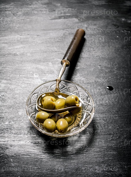 Оливки в оливковом масле в старой ложке