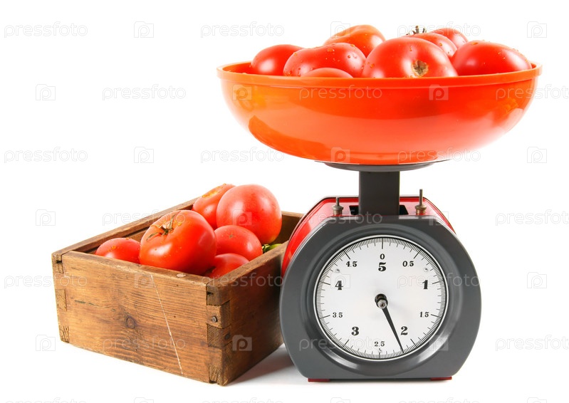 Помидоры на весах и в коробке