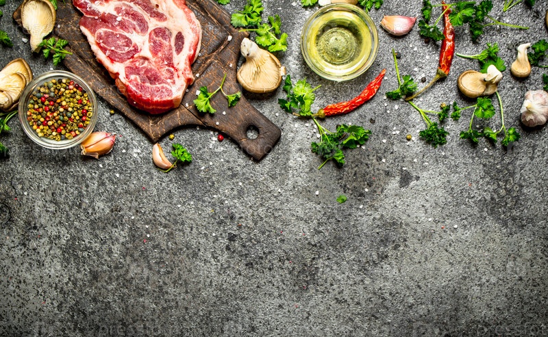 Сырое мясо с ароматными специями и свежей зеленью