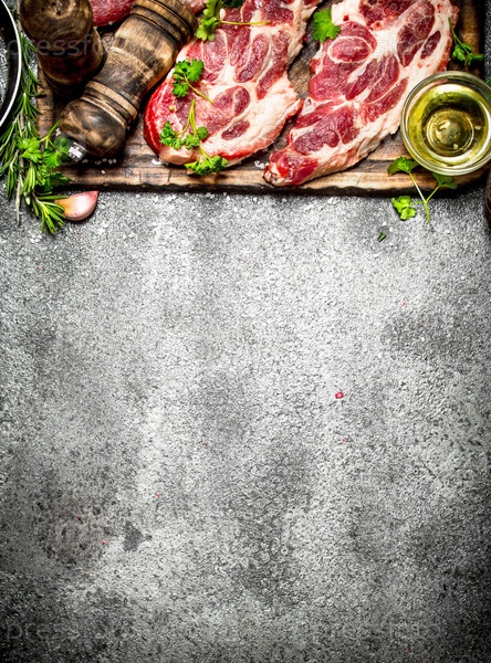 Сырое мясо фон с травами и специями