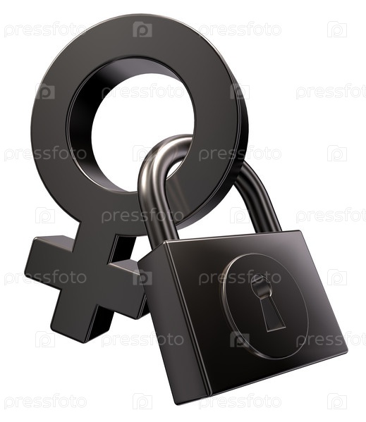 Символ женщины с замком на белом фоне - 3d иллюстрация