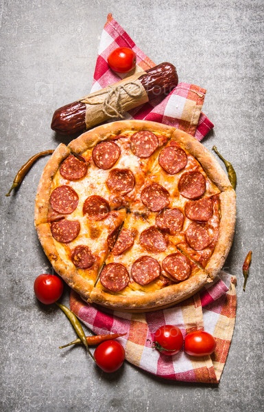 Пепперони пицца с колбасой и помидорами