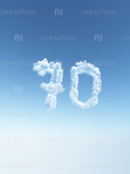 Число 70 на небе - 3D иллюстрация
