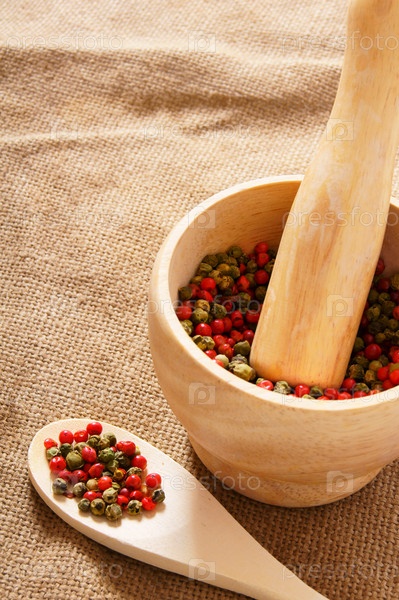 Перец в ступке на старой ткани