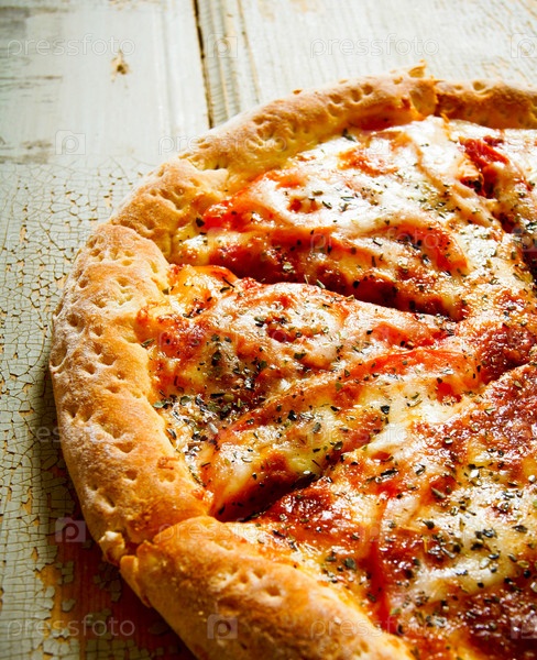 Вкусная пицца на деревянном фоне