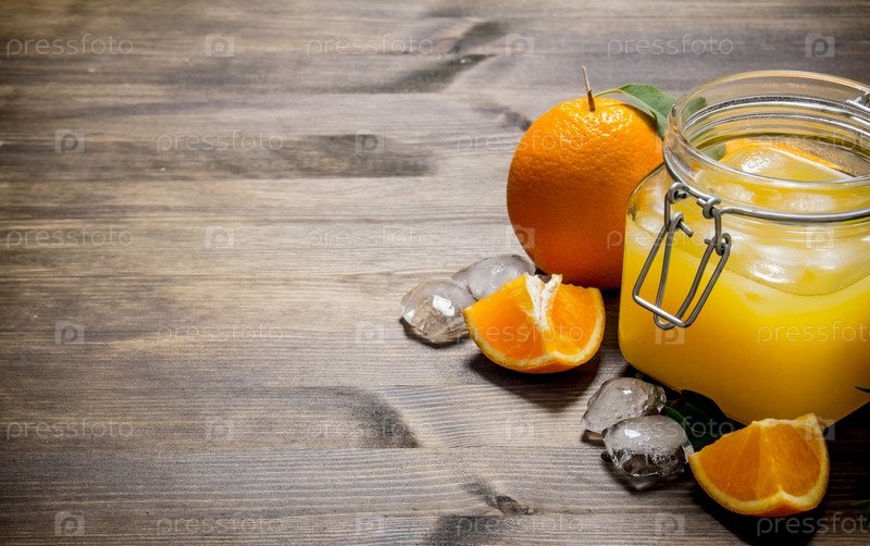 Свежий апельсиновый сок со льдом и ломтиками апельсина