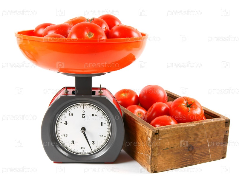 Помидоры на весах и в коробке