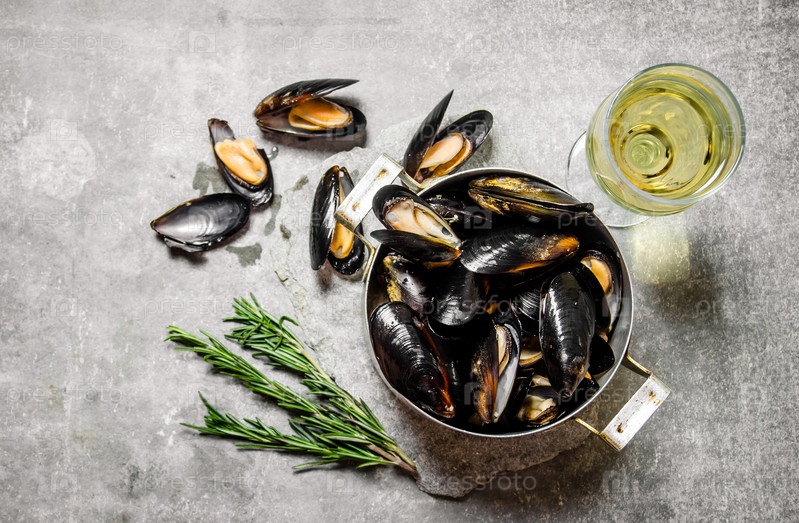 Горшок с моллюсками, розмарином и вином