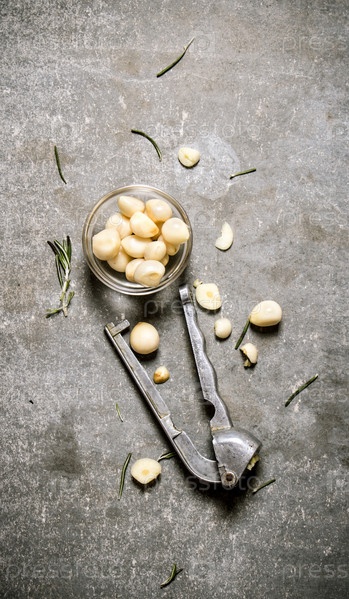 Очищенный чеснок в стеклянной миске