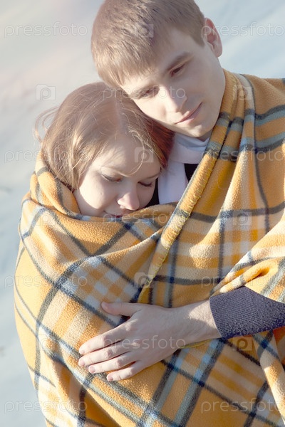 Молодая влюбленная пара обнимается