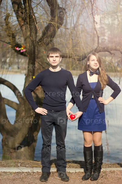 Молодая пара держит в руках сердце