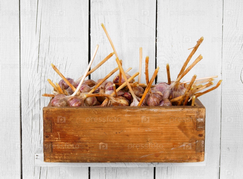 Чеснок в коробке