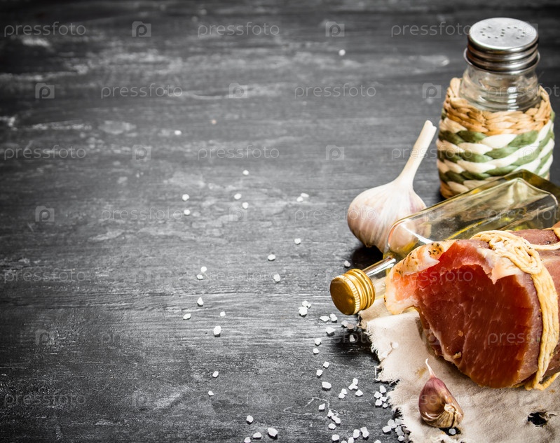 Кусок ветчины с чесноком