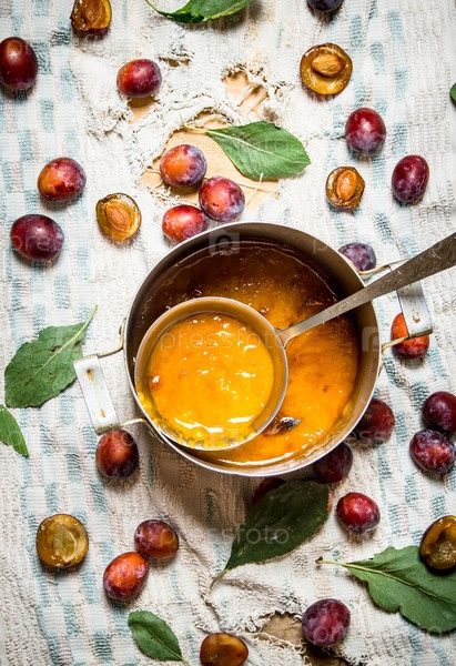 Свежее сливовое пюре в старом горшке