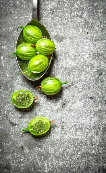 Зеленый крыжовник в ложке