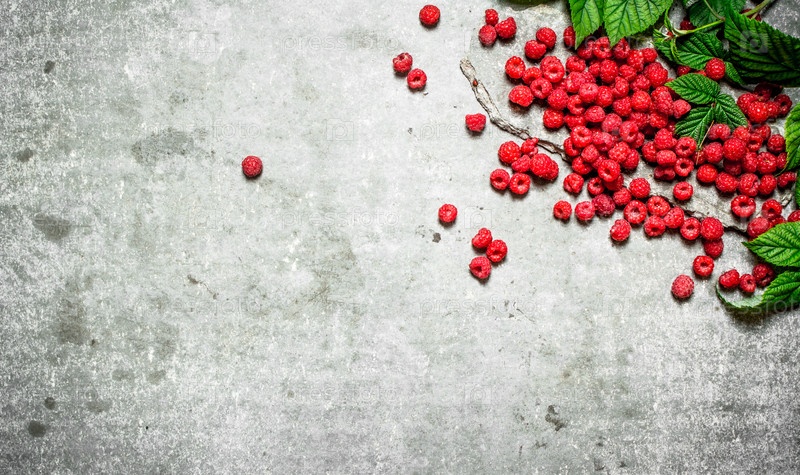 Красная малина с листьями